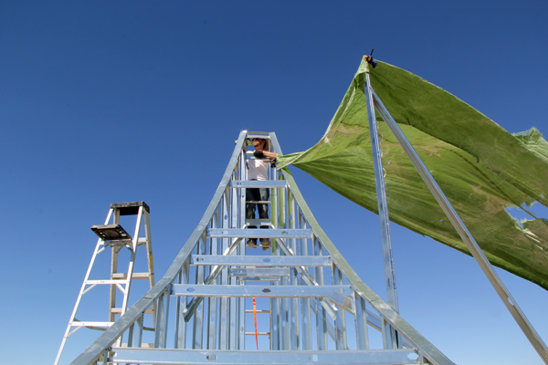 Like any other undertaking in Zaqistan, the project was fraught with challenging logistics, brutal heat, lack of shade, frigid nights, flat tires, and all the difficulties that make survival, let alone building in the desert difficult. However, the intrepid crew of Zaqistanis continued on, working all night through the pitch darkness of a lunar eclipse to complete the Monument.